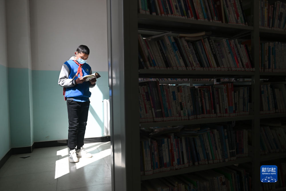 4月22日,青海省玉樹藏族自治州曲麻萊縣巴干鄉(xiāng)寄宿制小學的學生在圖書室內(nèi)閱讀。新華社記者 張龍 攝