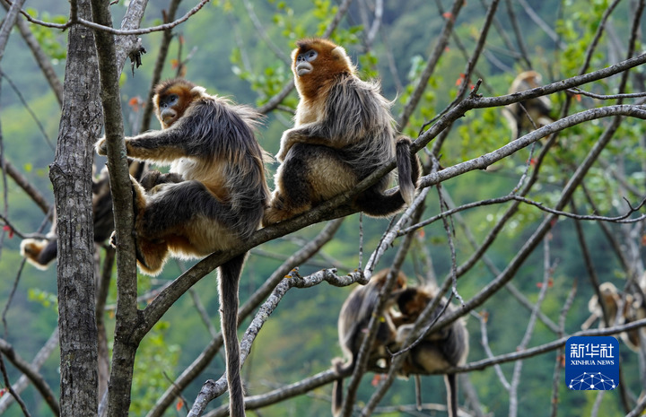 這是4月26日在四川白河國家級(jí)自然保護(hù)區(qū)里拍攝的川金絲猴。新華社記者 江宏景 攝