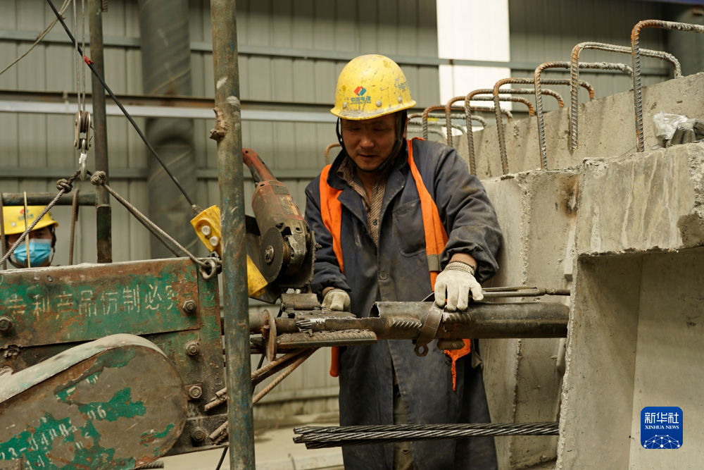 4月28日,一名工人在加西公路項目的預(yù)制梁場加工鋼筋。新華社記者 陳杰 攝