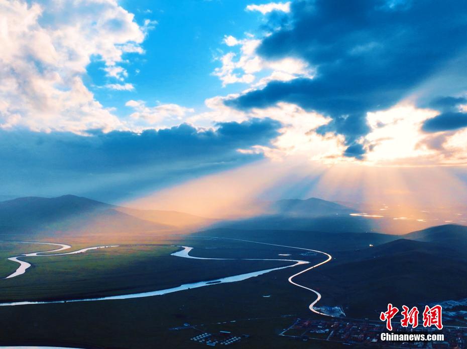 日前,四川阿壩州若爾蓋大草原在一陣清涼中雨后,夕陽突破云層,出現(xiàn)了彩虹和丁達(dá)爾光相映成畫的奇妙景象。微風(fēng)拂過,泥土和雨水的清香撲鼻,群山籠煙霞,河流蜿蜒過,東有七彩虹,西邊落日雄。鄧政琪 攝