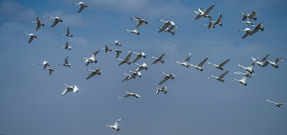 隨著天氣轉(zhuǎn)暖,青海省海南藏族自治州共和縣塘格木鎮(zhèn)更尕海又迎來(lái)了一大批候鳥。大天鵝,黑頸鶴以及白鷺、大雁、赤麻鴨等10多種候鳥回歸,它們一會(huì)兒在天空中飛翔,一會(huì)在岸邊棲息,一會(huì)兒又沖向水中捉魚覓食,在這綠水青山的環(huán)境里好不愜意。共和縣融媒體中心 供圖