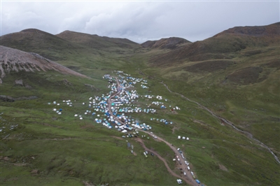 對理塘人來說,蟲草一直是大部分農(nóng)牧民的主要收入。雖然今年采集蟲草的人不及往年,但阿加溝依然涌進(jìn)了上萬人。6月8日下午,部分采集者已經(jīng)下山,營地里尚有數(shù)百個帳篷錯落有致地搭建在道路兩邊的草地上,人們都去了山上,整個山谷一片沉靜。只有傍晚六七點的時候,人們才像雪水一樣從山上匯聚下來,這里才變得熱氣騰騰。