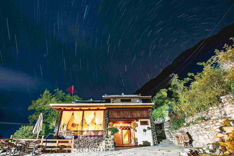 白天的色龍村,云霧飄浮在山腰,牛群慵懶地穿行于林間,恬靜閑適,及至餐時(shí),炊煙裊裊,一派祥和。夜晚,靜謐的村莊被燈火次第點(diǎn)亮,像是墜落于高原山間的星河,璀璨耀眼,浪漫迷人。