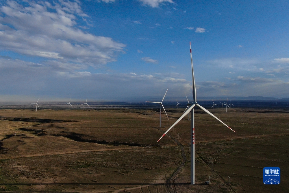 這是6月26日在青海省海南藏族自治州共和縣拍攝的風(fēng)力發(fā)電機。新華社記者 張龍 攝