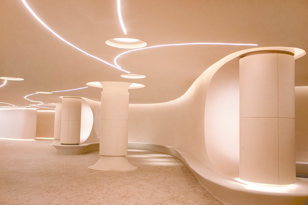 “看見九寨”大樓內(nèi)的10余個(gè)空間里,設(shè)計(jì)團(tuán)隊(duì)用不同的色彩和科技表現(xiàn)手法表達(dá)出不同的舒緩風(fēng)格,治愈人心。“獨(dú)自醒來”藝術(shù)館運(yùn)用弧形和曲線,將空間切割出曼妙的身形,輕盈靈動(dòng),淺黃柔色的燈光彌漫著溫柔氣息;以白色調(diào)為主的“九寨時(shí)光”圖書館,能讓人從浮躁中快速安靜下來。