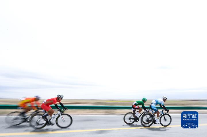 7月31日,第21屆環(huán)青海湖國際公路自行車賽進行第五賽段青海湖景區(qū)至茶卡壹號·鹽湖景區(qū)的角逐。新華社記者 張龍 攝