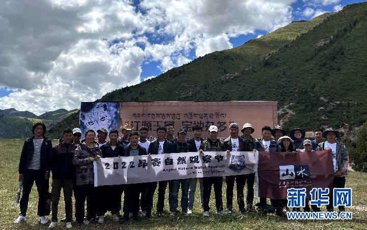 山水自然保護中心工作人員、部分自然觀察愛好者以及當(dāng)?shù)叵驅(qū)Ш嫌傲裟?。(山水自然保護中心供圖)