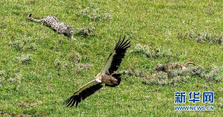 自然觀察愛好者在2022年昂賽自然觀察節(jié)上拍攝到的雪豹和高山兀鷲。新華網(wǎng)發(fā) (李梓豪 攝)