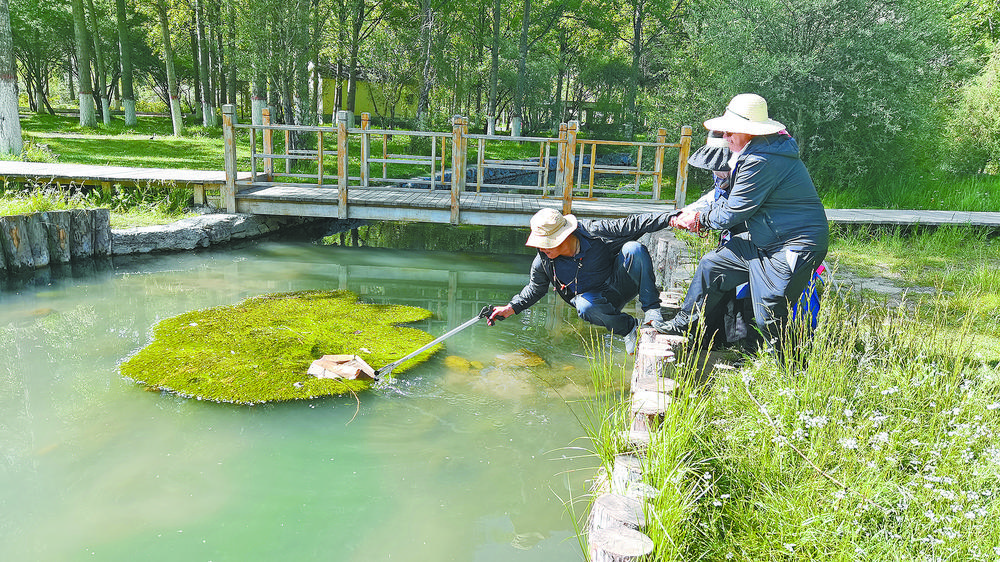 巴塘河濕地公園內(nèi)清除雜草的生態(tài)管護員們。譚梅 攝