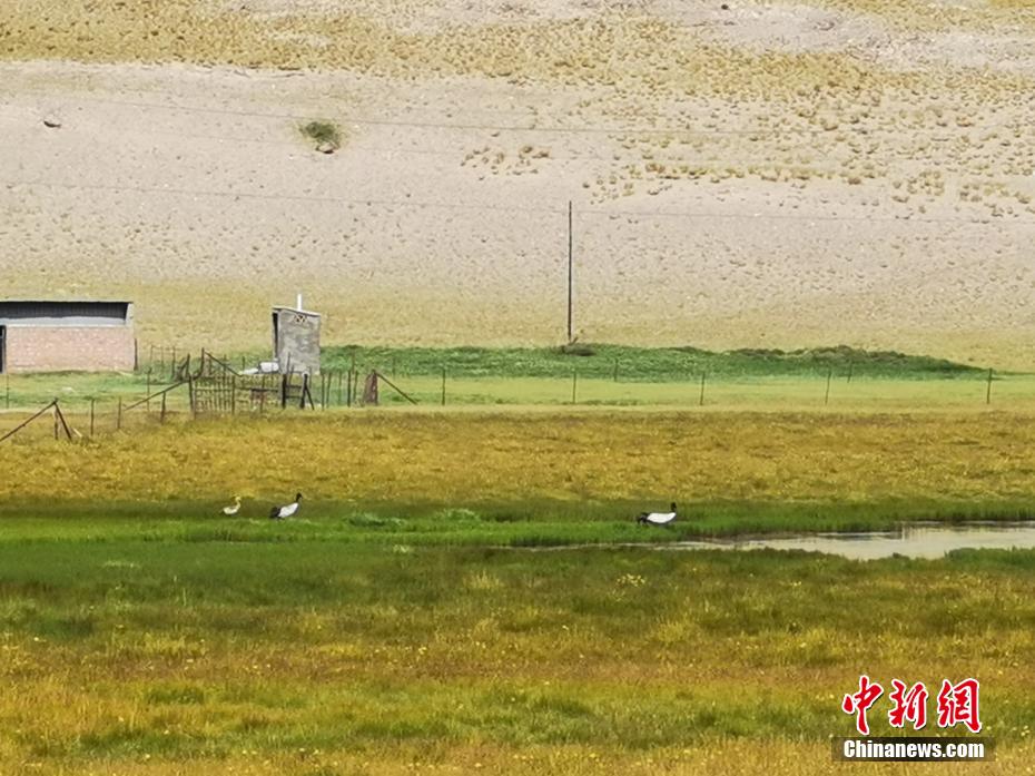 黑頸鶴群“落戶”祁連山木里濕地