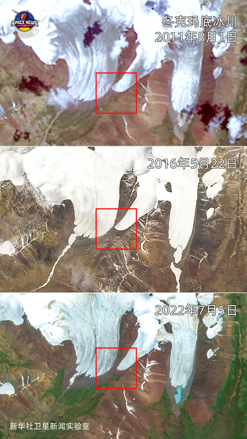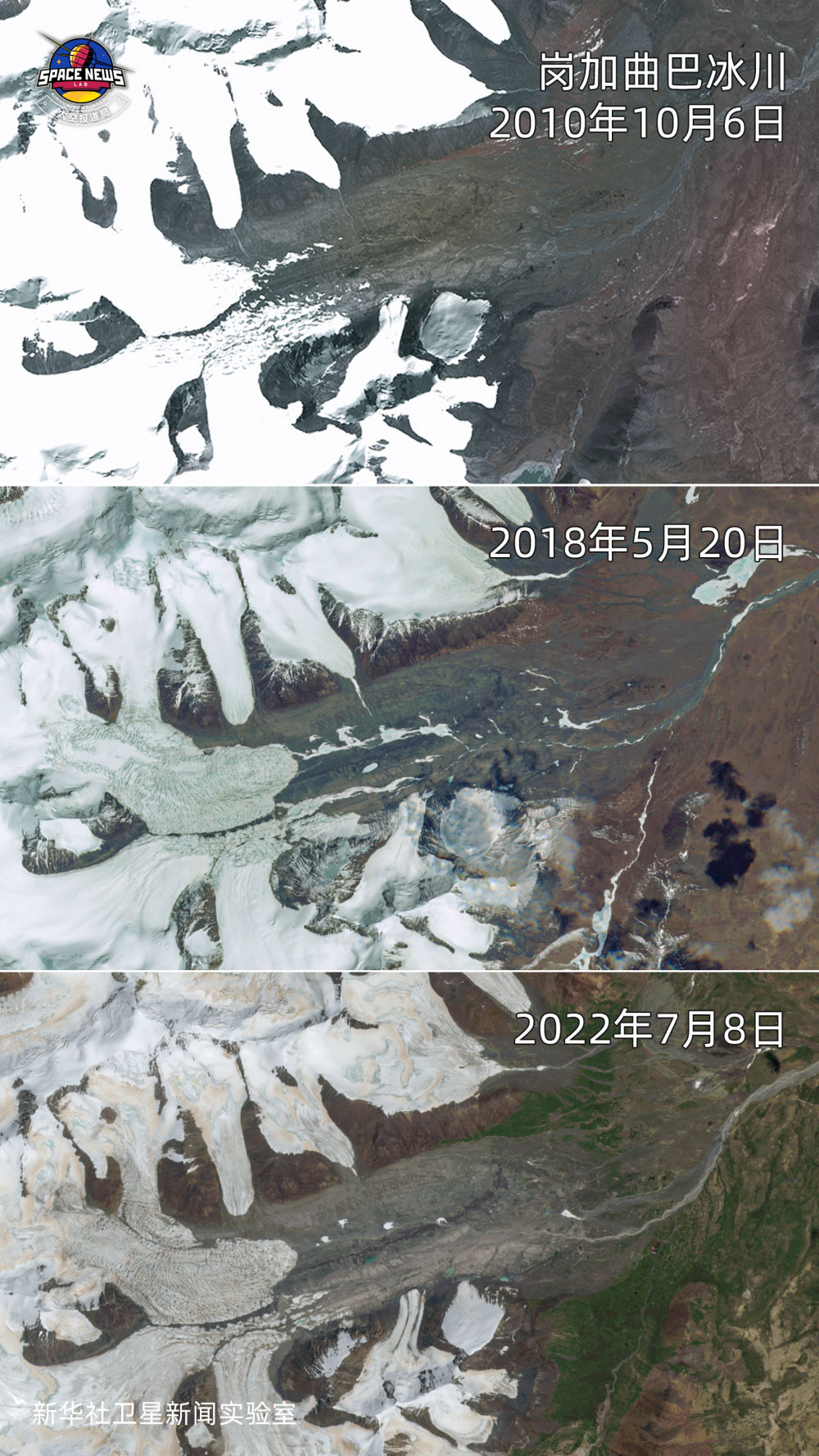 中國氣象局氣候變化中心發(fā)布的《中國氣候變化藍皮書(2021)》顯示,全球山地冰川整體處于消融退縮狀態(tài),1985年以來山地冰川消融加速。其中長江源區(qū)大、小冬克瑪?shù)妆ň始铀傧谮厔荩?020年這兩條冰川末端分別退縮了10.1米和15.7米。