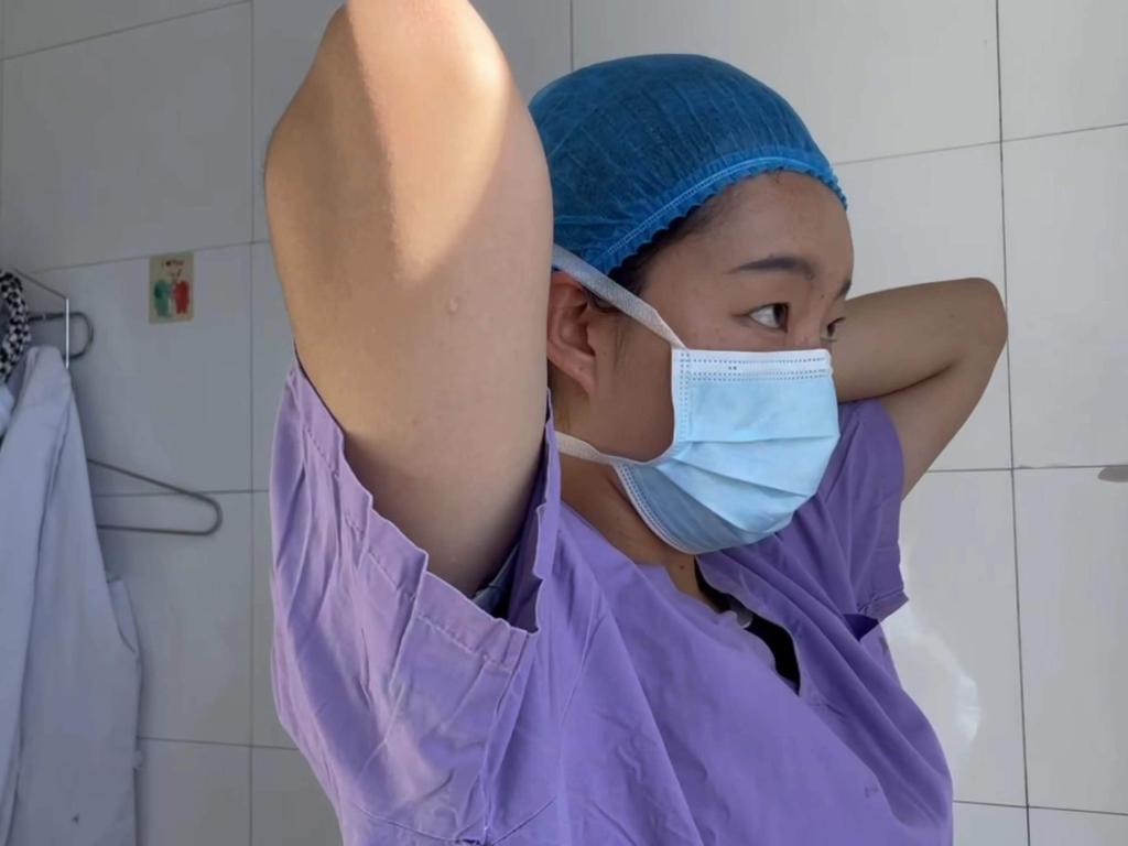 “第一回進(jìn)手術(shù)室,非常緊張!”桑周拉毛換好手術(shù)服后,對著鏡子把頭發(fā)扎緊。然后,她按照手術(shù)室麻醉醫(yī)生的要求,把耳邊的碎發(fā)一絲不茍地塞進(jìn)帽子,然后轉(zhuǎn)身走進(jìn)了手術(shù)室。