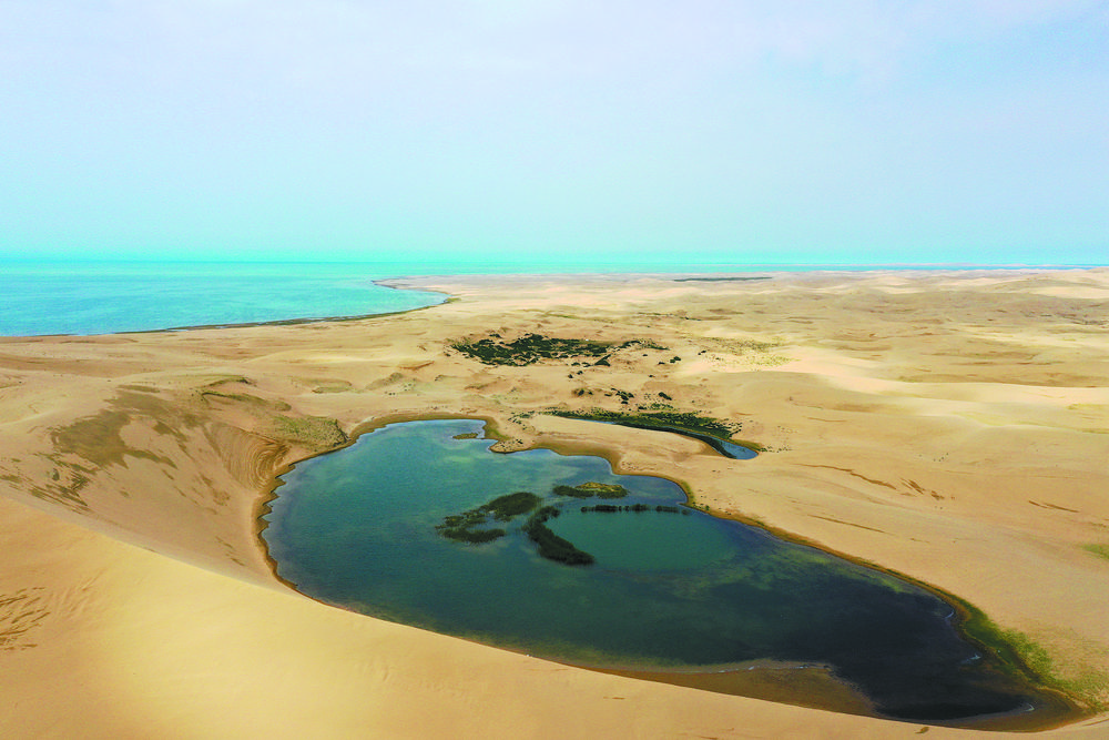 青海湖沙島人退水漲綠來。