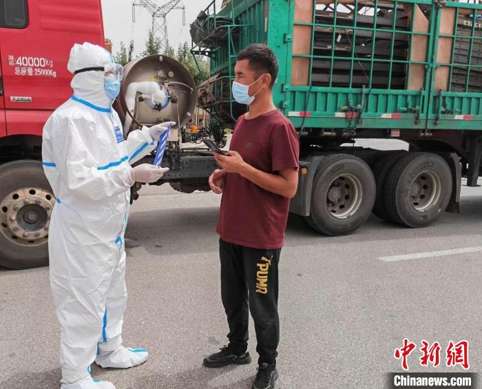 圖為吳遠(yuǎn)孝在高速卡口對(duì)進(jìn)入德令哈市區(qū)的車(chē)貼封條?!沁h(yuǎn)孝 供圖