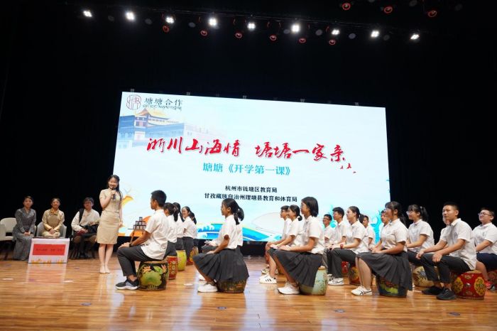 9月1日,在四川省甘孜州理塘縣二中報告廳內(nèi),進行了一場別開生面的開學第一課。相隔2500公里的四川省甘孜州理塘縣二中和浙江省杭州市錢塘區(qū)下沙中學的學子們,一起“跨越千山萬水”,通過視頻連線開展了一場充滿著喜悅、溫情、感動和希望的新學期課程。