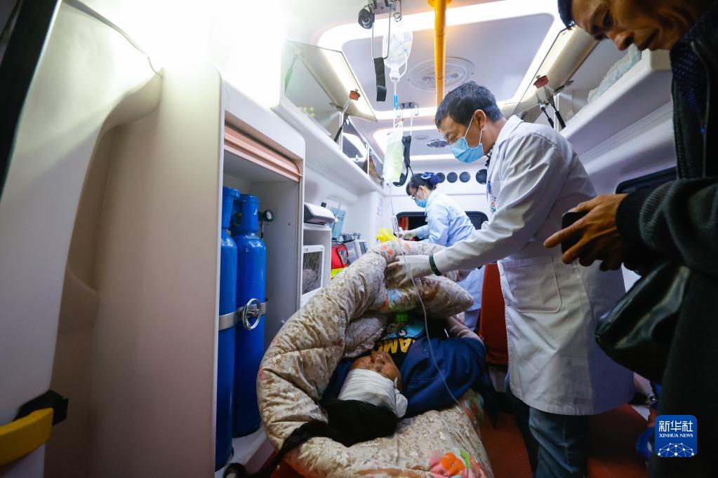 9月5日晚,在四川甘孜州瀘定縣磨西鎮(zhèn)的受災(zāi)群眾臨時安置點,醫(yī)務(wù)人員在轉(zhuǎn)運傷員。新華社 沈伯韓 攝