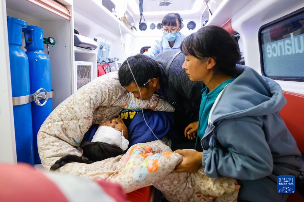 9月5日晚,在四川甘孜州瀘定縣磨西鎮(zhèn)的受災(zāi)群眾臨時安置點,人們轉(zhuǎn)運受傷群眾。新華社 沈伯韓 攝