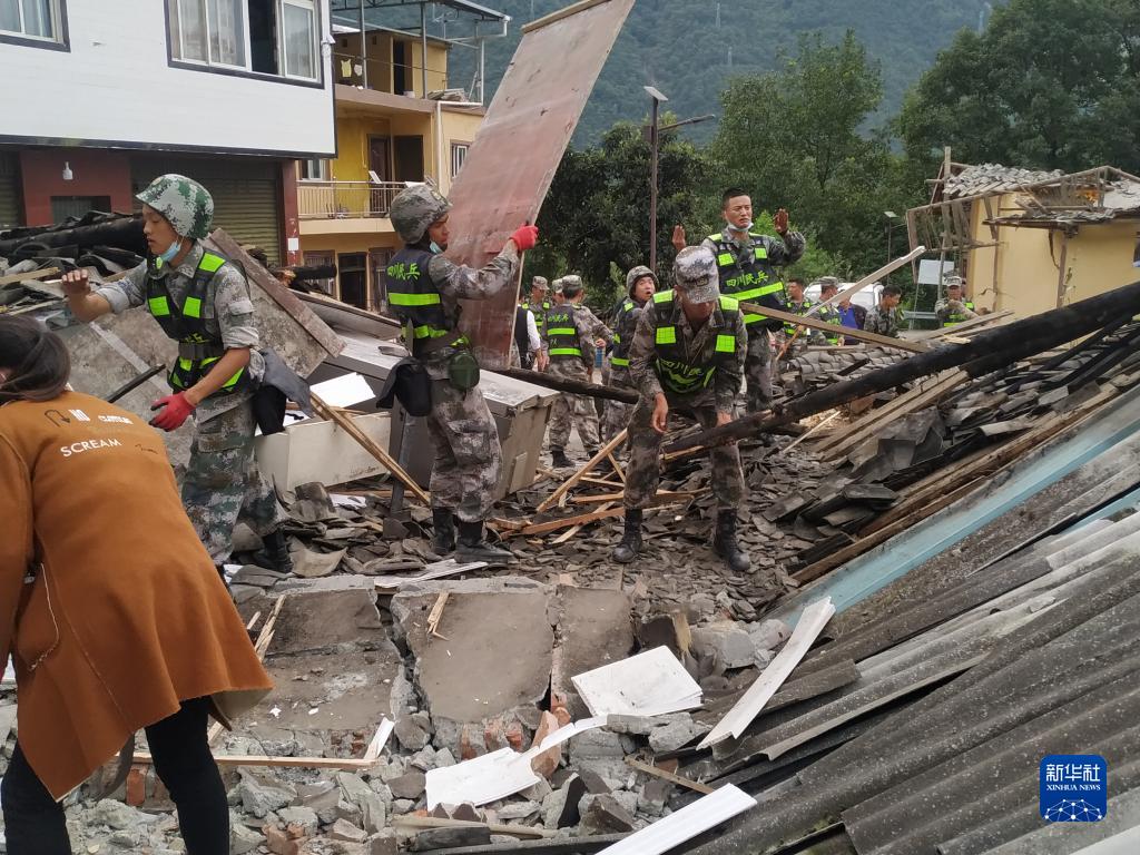9月6日,四川瀘定縣人武部組織民兵在磨西鎮(zhèn)磨子溝村進(jìn)行清理作業(yè)。新華社發(fā)(冉培宗 攝)