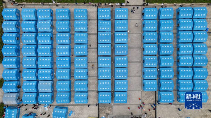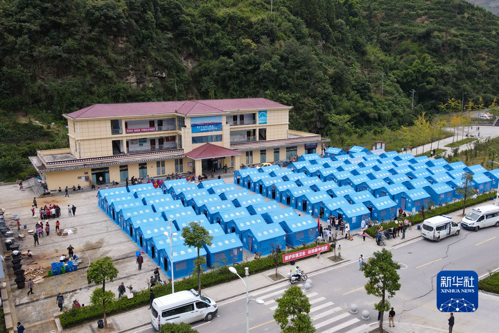這是9月6日拍攝的位于石棉縣王崗坪鄉(xiāng)挖角村村委會(huì)的安置點(diǎn)(無(wú)人機(jī)照片)。新華社記者 胥冰潔 攝