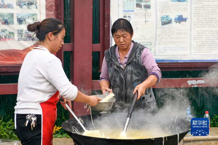 9月6日,在位于四川省雅安市石棉縣王崗坪鄉(xiāng)挖角村村委會(huì)的安置點(diǎn),村民在安置點(diǎn)內(nèi)架起鍋灶,生火做飯,為安置點(diǎn)里的鄰里鄉(xiāng)親準(zhǔn)備餐食。