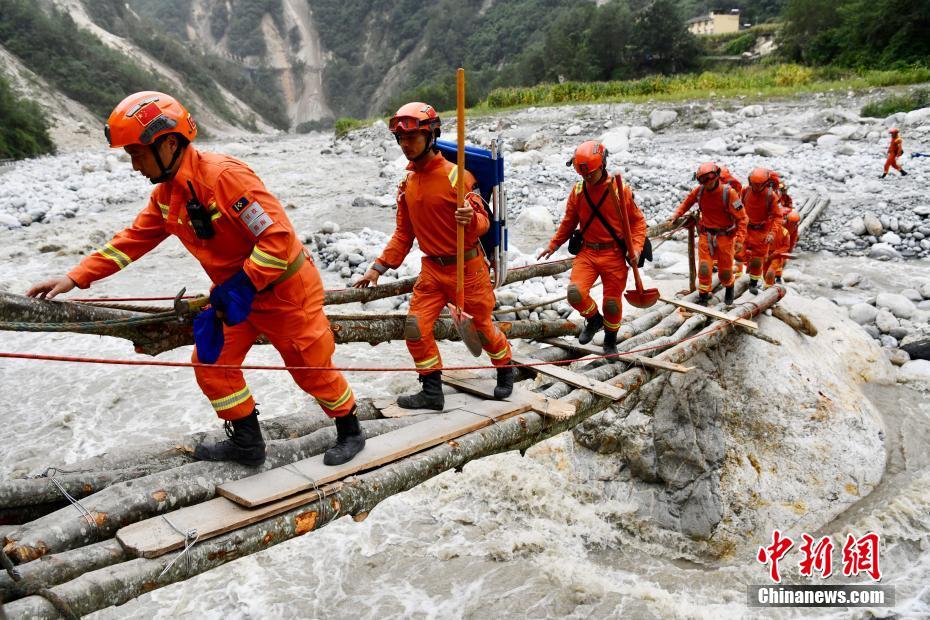 9月6日,四川甘孜州瀘定縣磨西鎮(zhèn),甘孜州森林消防支隊康定中隊隊員通過簡易木橋,深入山區(qū)開展救災工作。9月5日,四川瀘定發(fā)生6.8級地震。 中新社記者 張浪 攝