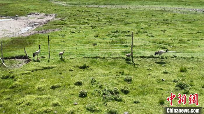 圖為“高原仙子”黑頸鶴。澤庫縣委宣傳部 供圖