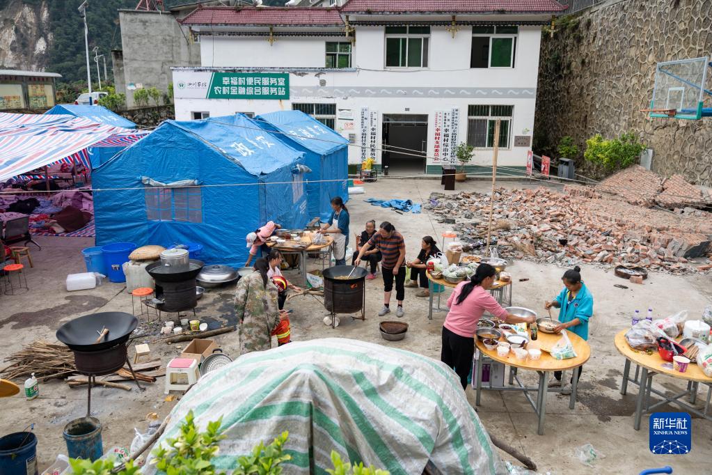 9月7日,在雅安市石棉縣王崗坪彝族藏族鄉(xiāng)幸福村二組,村民們?cè)趲づ裢庑菹?。新華社記者 才揚(yáng) 攝