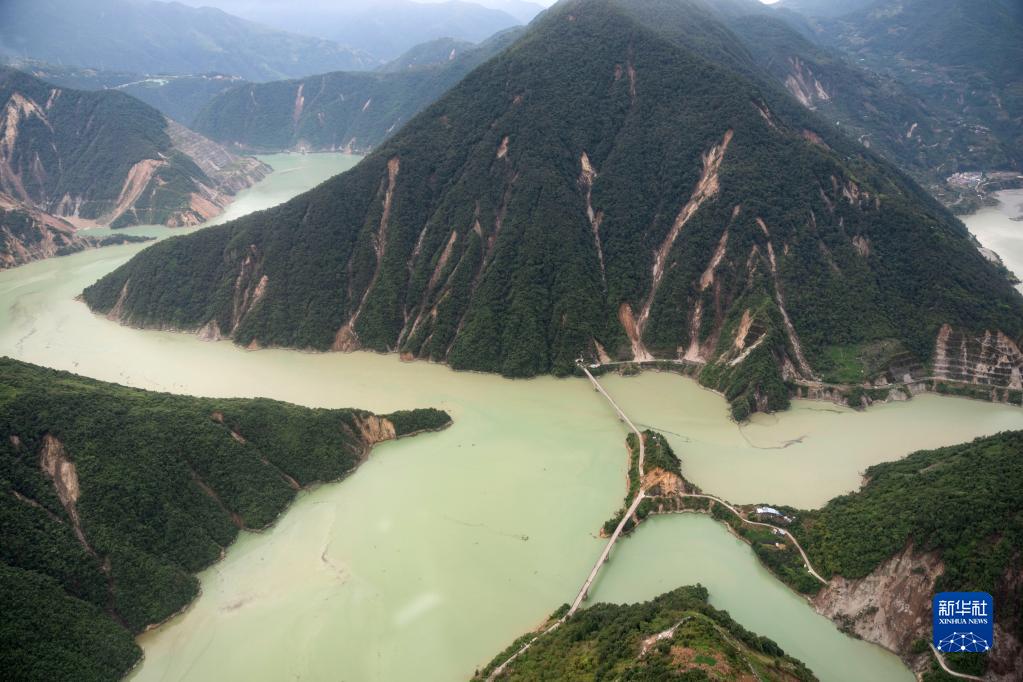 這是9月7日拍攝的雅安市石棉縣王崗坪彝族藏族鄉(xiāng)幸福村二組附近的照片,能看到山體多處滑坡(無(wú)人機(jī)照片)。新華社記者 才揚(yáng) 攝