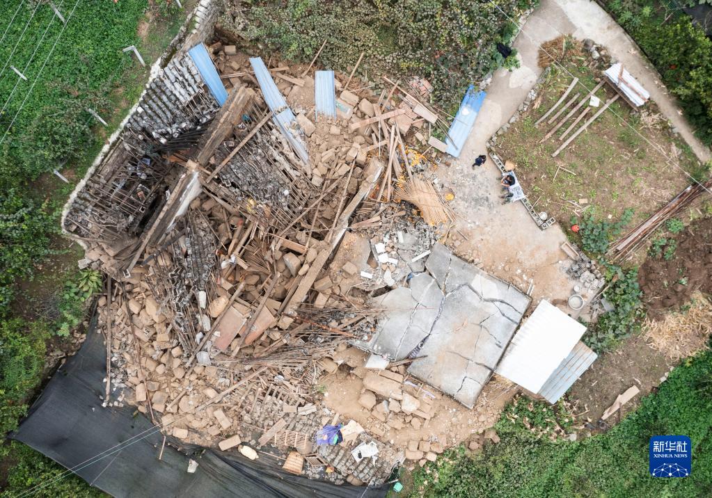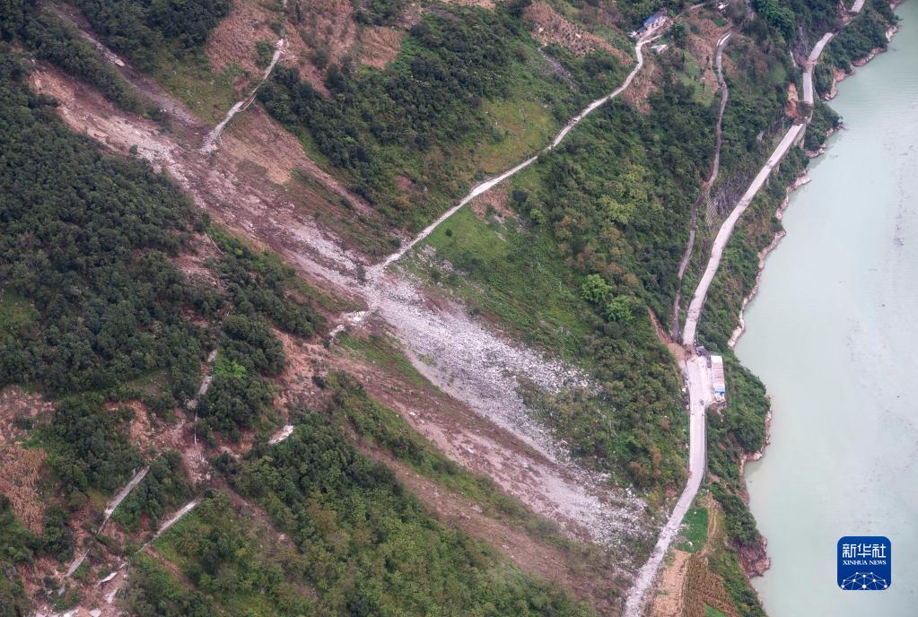 這是9月7日拍攝的雅安市石棉縣王崗坪彝族藏族鄉(xiāng)幸福村二組一戶倒塌的民房(無(wú)人機(jī)照片)。新華社記者 才揚(yáng) 攝