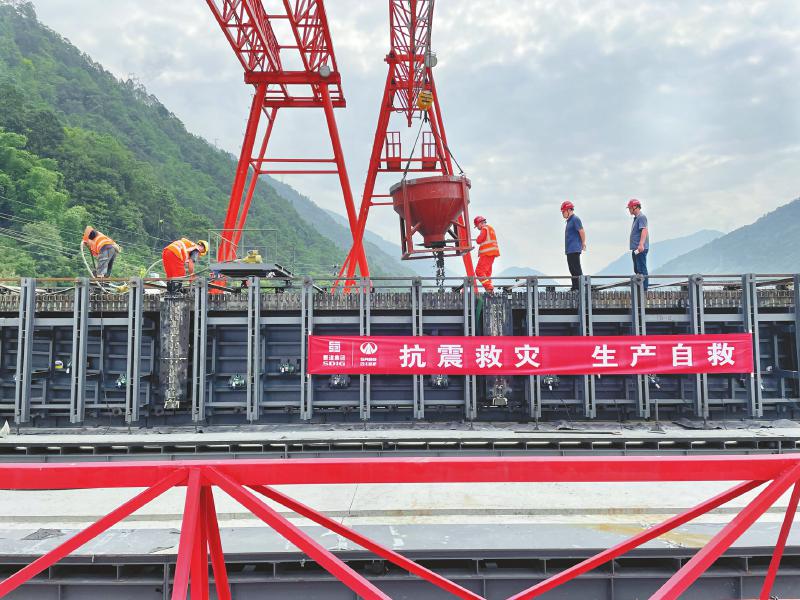 “9·5”瀘定地震發(fā)生后,摩崗嶺1號(hào)特大橋工點(diǎn)附近發(fā)生了嚴(yán)重的邊坡垮塌,巨大的落石損毀了該工點(diǎn)的進(jìn)場(chǎng)施工便道,所幸經(jīng)檢測(cè),大橋?qū)嶓w工程施工未受到損傷,各生產(chǎn)設(shè)施設(shè)備經(jīng)檢驗(yàn)后均未受損。在完成安全排查工作后,該工點(diǎn)很快復(fù)工,用陳甫君的話來(lái)說(shuō):“不等不靠,全力以赴推動(dòng)項(xiàng)目建設(shè)?!?/p>
