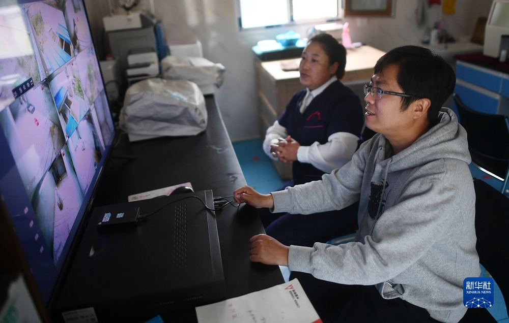 9月18日,在青海野生動(dòng)物救護(hù)繁育中心,工作人員查看監(jiān)控,了解荒漠貓的進(jìn)食情況。新華社記者 張宏祥 攝