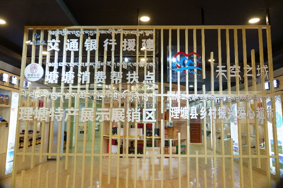 2018年,交通銀行幫助理塘建立愛心扶貧超市,含實體店和網店兩部分:實體店主要服務貧困戶日常消費,采用積分制,根據貧困戶參加力所能及的勞動和生產給予相應積分,貧困戶可在超市憑積分換購商品;網店是通過與電商平臺的對接,銷售理塘特色農牧商品和手工藝品,銷售利潤用于豐富實體店的品類,反哺當?shù)剞r戶。