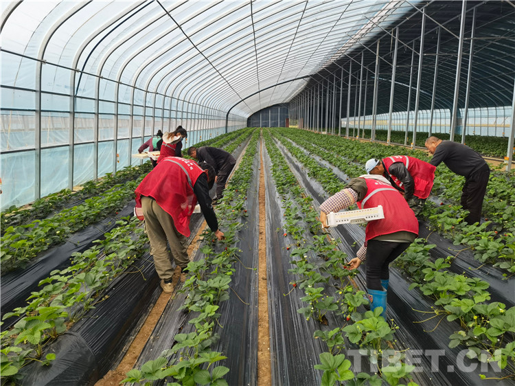 中國西藏網(wǎng)訊 時下,在四川省甘孜藏族自治州理塘縣濯?,F(xiàn)代農(nóng)業(yè)產(chǎn)業(yè)園區(qū),120畝草莓經(jīng)過100天的生長后迎來了收獲季。走進園區(qū)康呷村種植基地,大棚里的草莓長勢喜人,當?shù)?0多名農(nóng)牧民群眾正忙著梳葉、采摘,大棚里四處洋溢著豐收的喜悅?!耙郧拔覀兂朔N青稞、土豆之外,其余大多數(shù)時間都到處去打臨時工,收入也很不穩(wěn)定,一年到頭只能掙幾千元錢?!爆F(xiàn)年25歲的濯桑鄉(xiāng)漢戈村民格絨志瑪說道。
