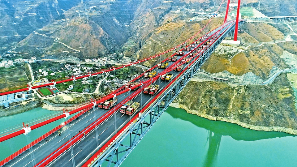 2018年12月,雅康高速公路瀘定大渡河大橋進(jìn)行通車前荷載試驗。楊濤 攝
