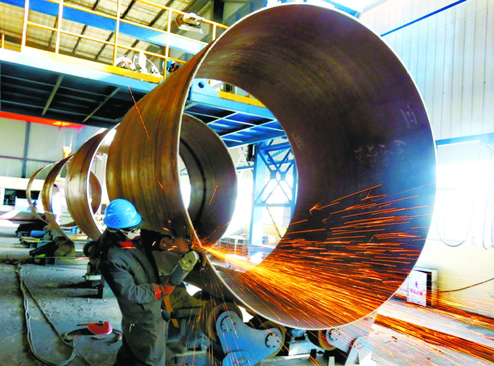 在青海華匯新能源有限公司的生產(chǎn)車(chē)間里,工人正在切割制作風(fēng)力發(fā)電組件。蘇烽 攝