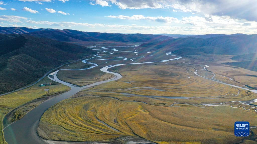 這是10月19日在四川省阿壩藏族羌族自治州若爾蓋縣拍攝的熱曲河(無人機照片)。新華社記者 王曦 攝