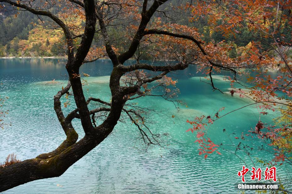10月23日,深秋時節(jié),四川九寨溝如同油畫一般,漫山遍野的紅葉絢麗多彩,與清澈見底的湖水交相輝映,美輪美奐,“秋日童話”正上演。 張浪 攝