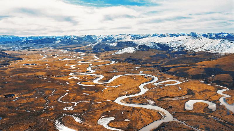 航拍阿壩縣漫澤塘濕地。尕讓澤登攝