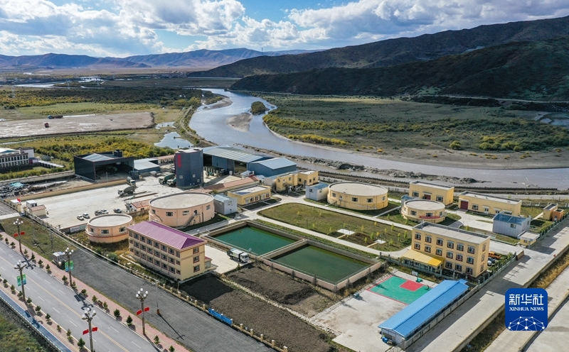 這是10月18日在四川省阿壩藏族羌族自治州若爾蓋縣唐克鎮(zhèn)拍攝的生活污水處理廠(無人機(jī)照片)。