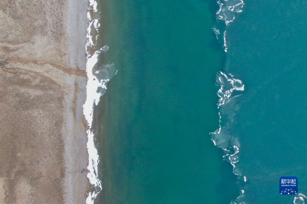 這是2020年4月20日在青海省海南藏族自治州共和縣黑馬河鎮(zhèn)拍攝的青海湖一景(無人機照片)。新華社記者 張龍 攝
