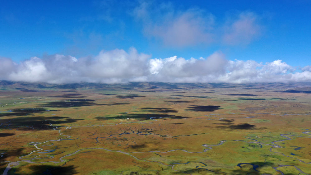 深秋,從空中俯瞰平均海拔3500多米的瑪曲濕地,大大小小的湖泊如珍珠般灑落在草原上,上萬只候鳥在這里安心度過繁殖季,準備飛往南方過冬。