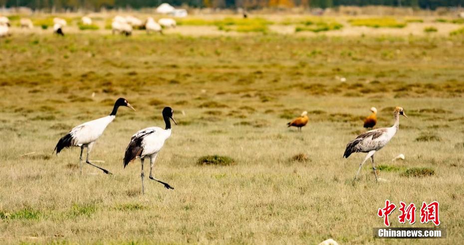 黑頸鶴群現(xiàn)身柴達(dá)木盆地都蘭湖國(guó)家濕地公園