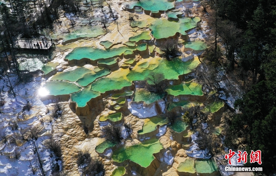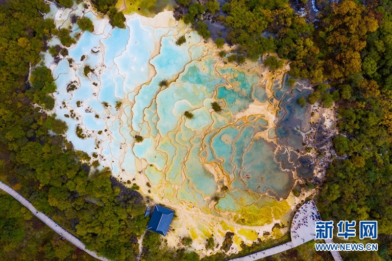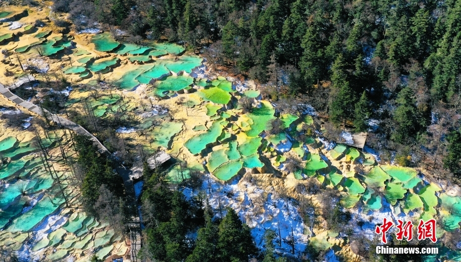 11月18日,航拍四川省阿壩藏族羌族自治州松潘縣黃龍景區(qū)風(fēng)光。(無人機照片) 中新社記者 安源 攝