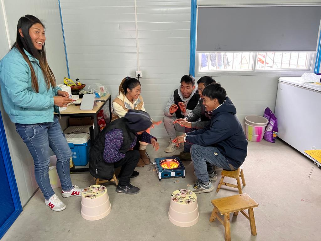 記者來到得妥鎮(zhèn)繁榮過渡安置點時,正逢群眾集體上山干農(nóng)活。此時川西高原氣溫已很低,山上下著雪,云霧繚繞。留在安置點內(nèi)的婦女、老人較多,正在室內(nèi)準備午飯或打掃衛(wèi)生。