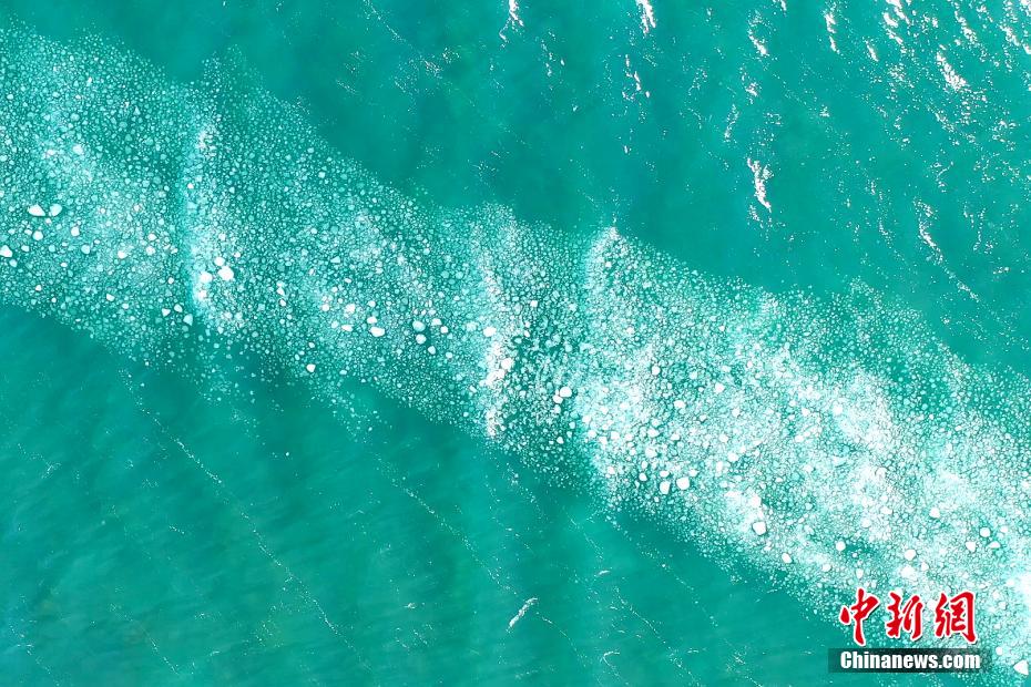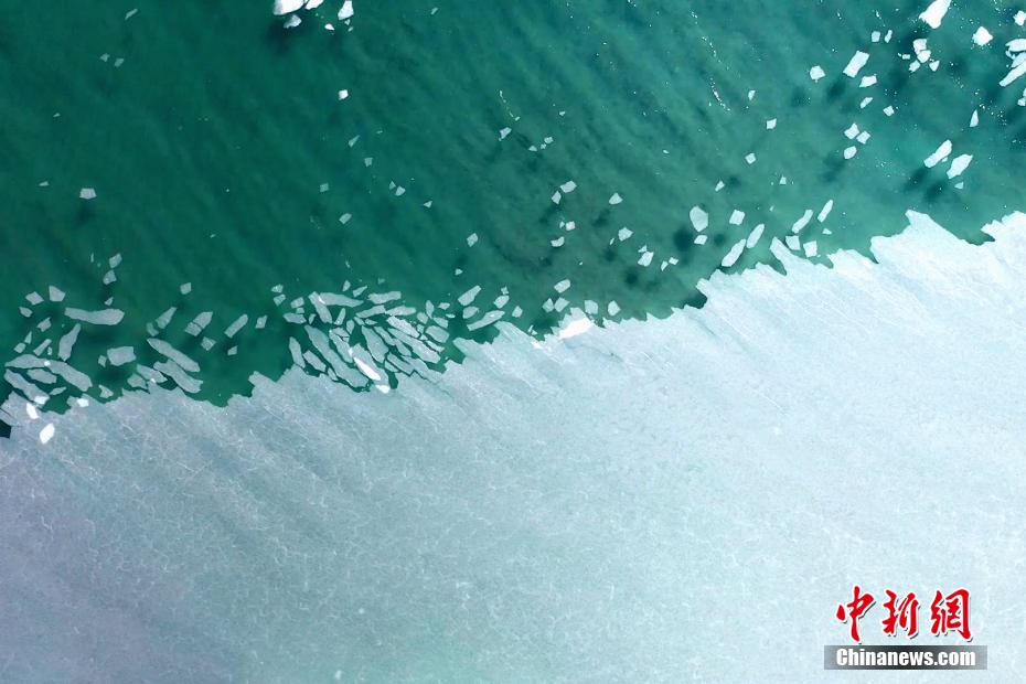 近日,素有“高原藍寶石”之稱的青海湖開始進入冰封期。青海湖水體周邊的零星結(jié)冰,青海湖西部邊緣、北部湖岸區(qū)、鳥島、青海湖斷崖等地出現(xiàn)成片結(jié)冰區(qū)。航拍畫面中可以看到湖心范圍尚有大面積未結(jié)冰區(qū)域。青海湖是中國最大的內(nèi)陸咸水湖。冬日里的青海湖,寧靜而內(nèi)斂。千里冰封,宛如童話世界。封凍的湖面如同破碎的“玉帶”,形成獨特的景觀。張世偉 攝