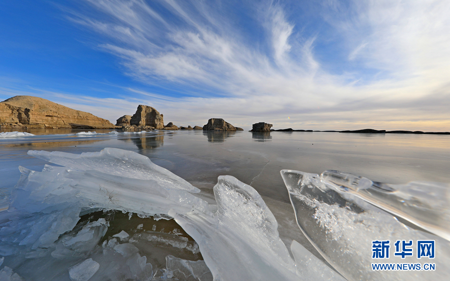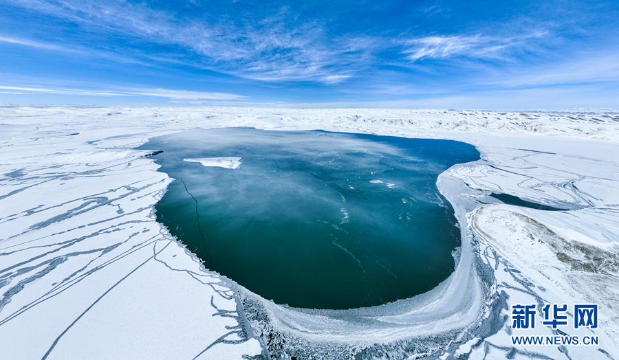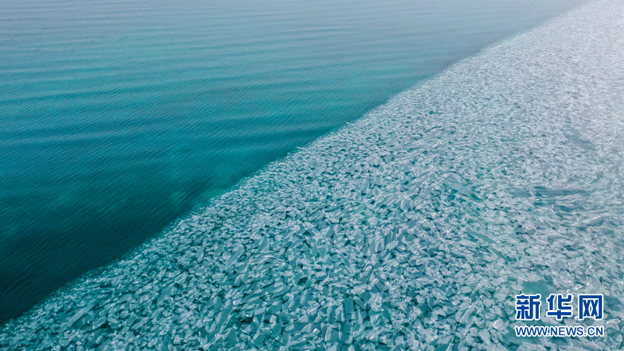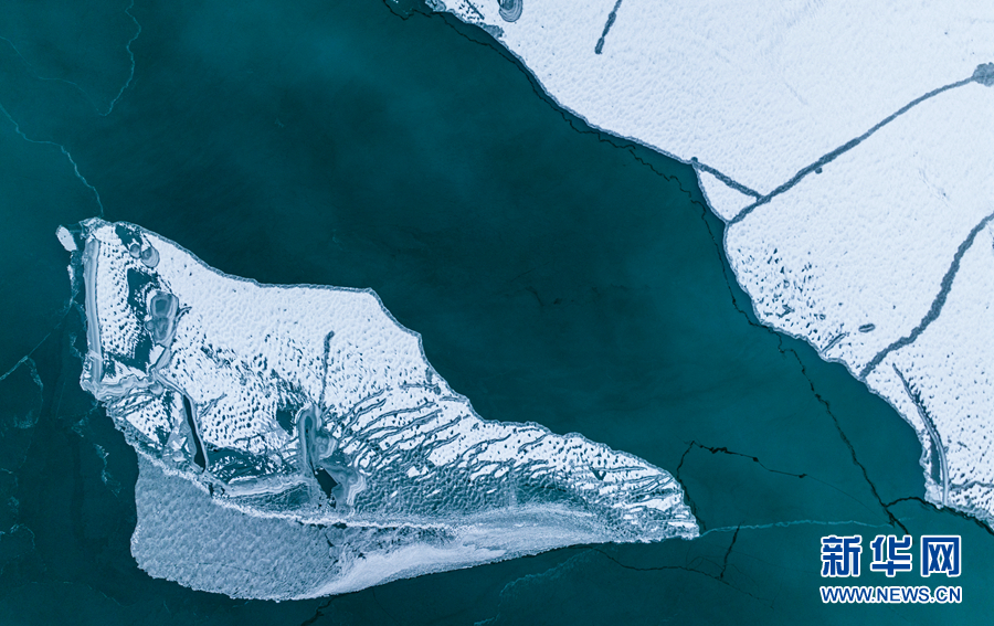 封凍的湖面如同破碎的“玉帶”,形成獨特的景觀。新華網(wǎng)發(fā)(宋忠勇 攝)