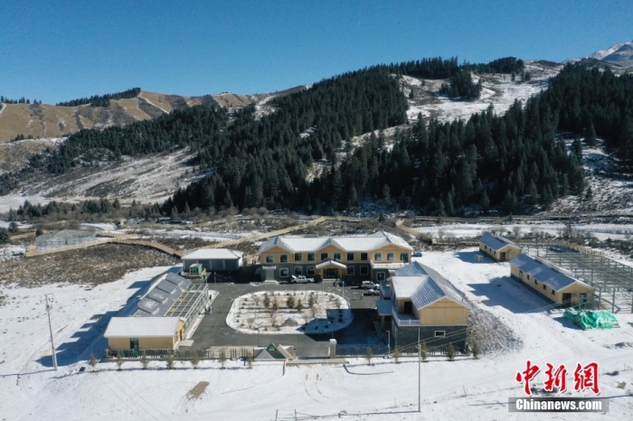 圖為1月18日,航拍青海省祁連山國(guó)家公園野生動(dòng)物救護(hù)繁育站。(無人機(jī)照片) 中新社記者 馬銘言 攝