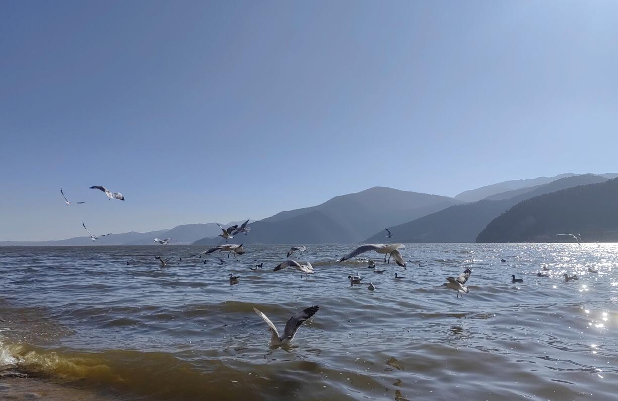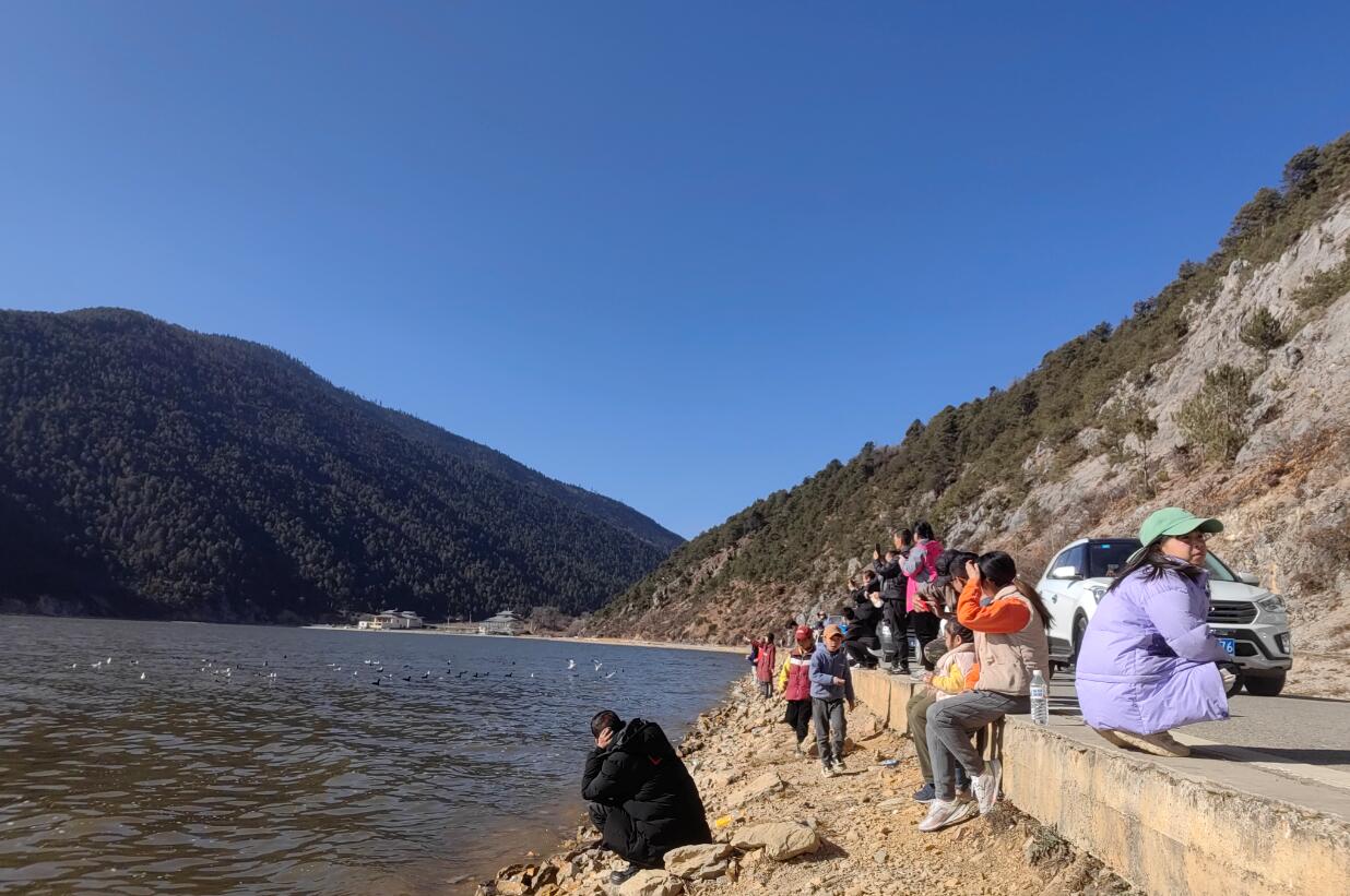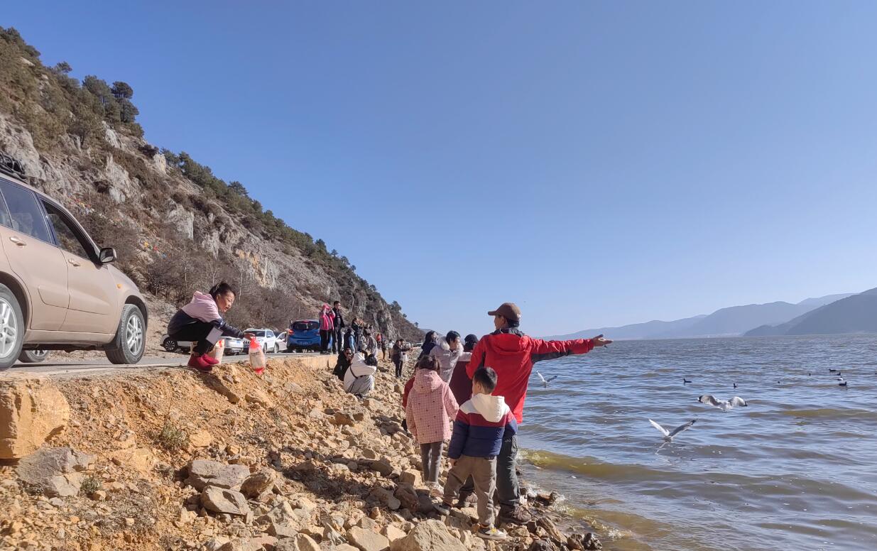 1月28日,記者在納帕海自然保護(hù)區(qū)看到成群的海鷗在這里盤旋飛舞,不少游客手托面包進(jìn)行投喂,一幅幅人與自然和諧共生的美好畫卷徐徐鋪開。“第一次來(lái)香格里拉,看到不少游客在這里投喂海鷗,我也買一袋來(lái)試試?!庇慰屯蹊b詳說(shuō)。
