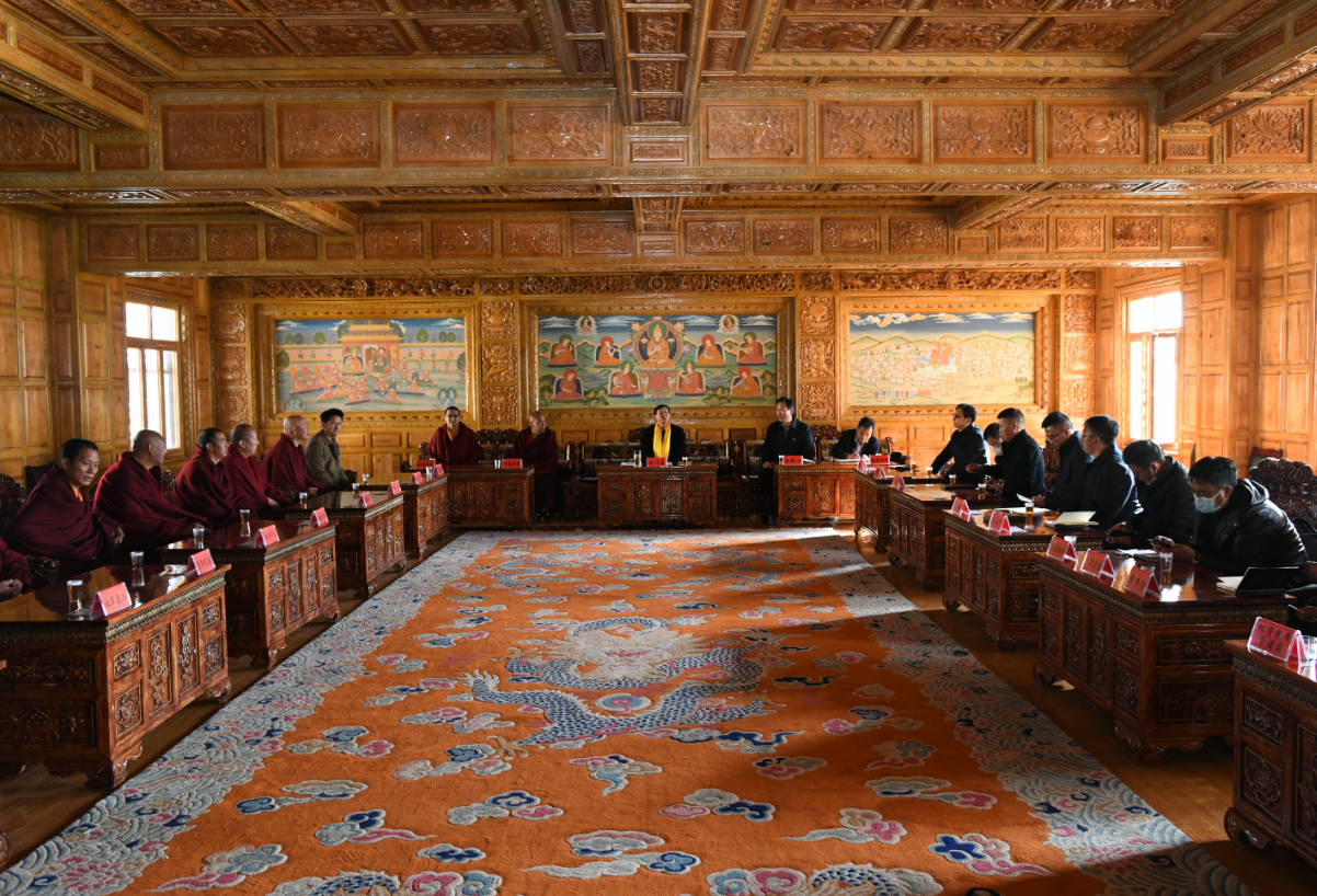 2月3日,云南省政協(xié)副主席、迪慶州委書記王以志到松贊林寺調(diào)研時強調(diào),要堅持以習(xí)近平新時代中國特色社會主義思想為指導(dǎo),全面貫徹黨的宗教工作基本方針,積極引導(dǎo)藏傳佛教與社會主義社會相適應(yīng),同心同向,推動藏傳佛教在寺院健康傳承。
