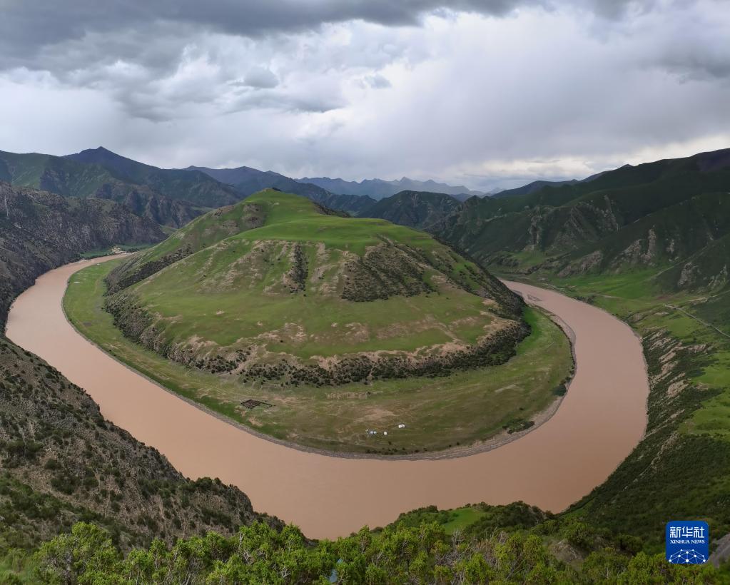 在青海省玉樹藏族自治州治多縣拍攝的“萬里長(zhǎng)江第一灣”(2021年7月23日攝)。新華社記者 呂雪莉 攝